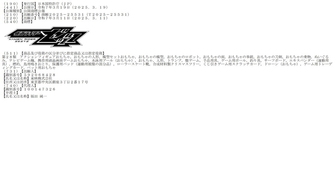 New Rider: Kamen Rider Zeztz Trademark Registered By Toei